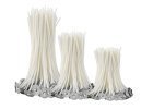Knoty: dřevěné (moderní vzhled, jemné praskání) vs. bavlněné (čistý plamen). Držáky zajistí přesné vystředění.