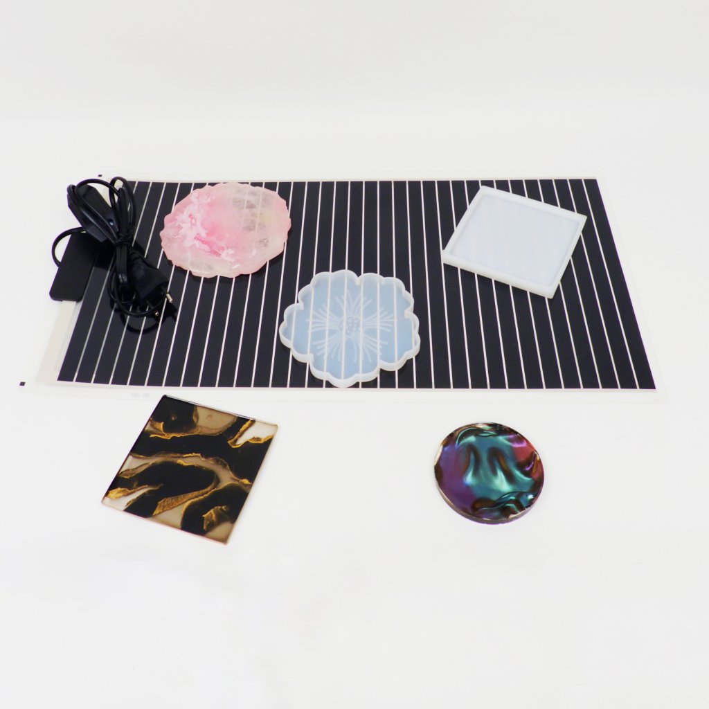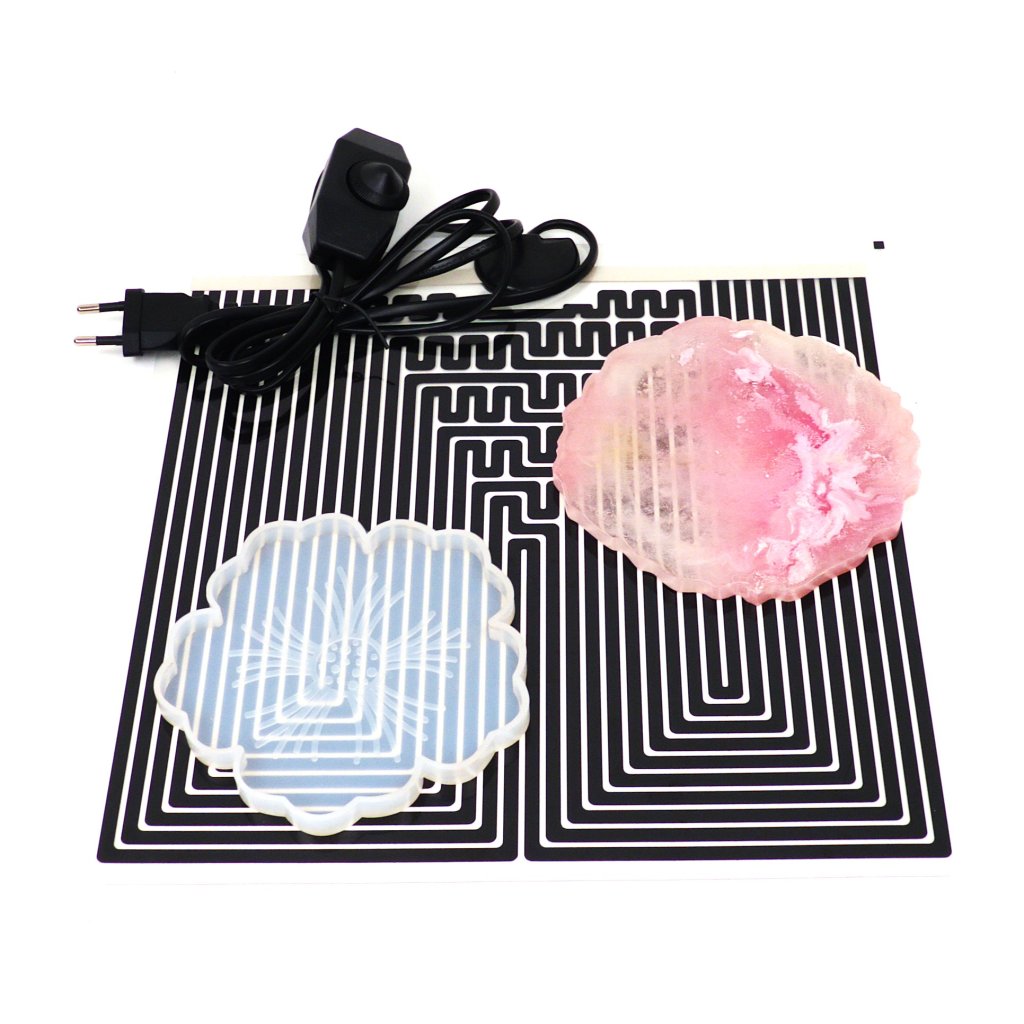 Teplená pracovní podložka je určená k urychlení procesu vytvrzení odlitků z pryskyřice. Silikonová forma zalitá pryskyřicí se umístí na Tepelnou pracovní podložku, která díky ohřevu urychlí vytvrzení. Vytvrzení díky spodnímu ohřevu a mírnému zvýšení teply proběhne naprosto dokonale. Na Tepelnou pracovní podložku lze umístit několik výrobků najednou.