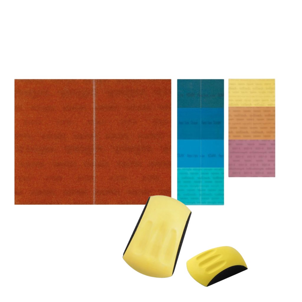 Pro dosažení perfektního povrchu postupujte od nižších zrnitostí směrem k jemnějším (K240 → K3000) a následně doleštěte přiloženými pastami (základní → střední → finální).